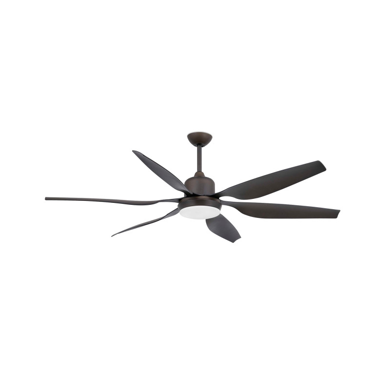Large brown ceiling fan with 6 aerodynamic blades which increase the feeling of freshness.