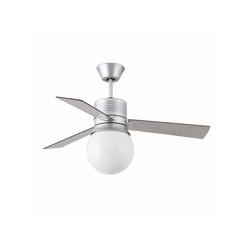Ceiling fan, modern and original, ideal for the ventilation of rooms up to 13m2. This ceiling fan with light operates with two light bulbs, a E27 40W (not included). We recommend our low-consumption light bulb ref.16167 E27 20W 2700K. Motor built in steel, reversible wooden blades with black/gray finish, and opal acrylic diffuser. Operated on remote control (included). It offers 3 adjustable speeds with a consumption of 11-23-42W y 100-150-190 revolutions per minute depending on speed. This fan comes with a reverse function, so you can also use it in winter, improving the efficiency of your heating system.