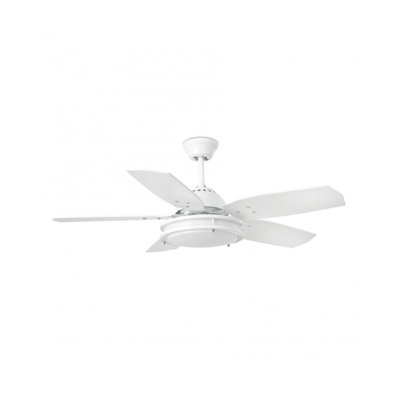 The flat housing, the integrated frosted glass light as well as the 5 wide fan blades radiate with a white finish and give the BRISTOL WHITE a pure and clear appearance. The quiet fan motor can be individually regulated on three speed levels. Whereas the summer acitivity mode provides a pleasant cooling effect on hot days, the changable winter activity mode allows the use of bottled-up heat underneath the roof.