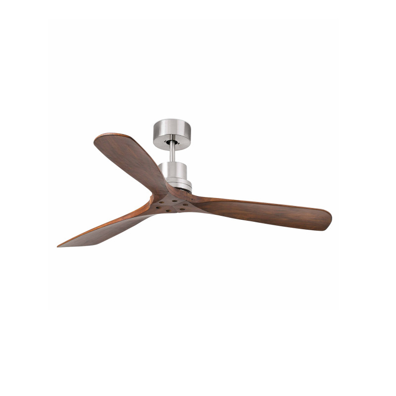 Modern Ceiling Fan with a ground-breaking design, ideal for the ventilation of rooms over 17.6m2. Motor made of steel and natural wooden blades. Blade finish is dark walnut. Operated on remote control (included). It has 3 adjustable speeds with a 14-30-65W consumption and 90-140-180 revolutions per minute depending on speed. This fan comes with a reverse function, so you can also use it in winter, improving the efficiency of your heating system.