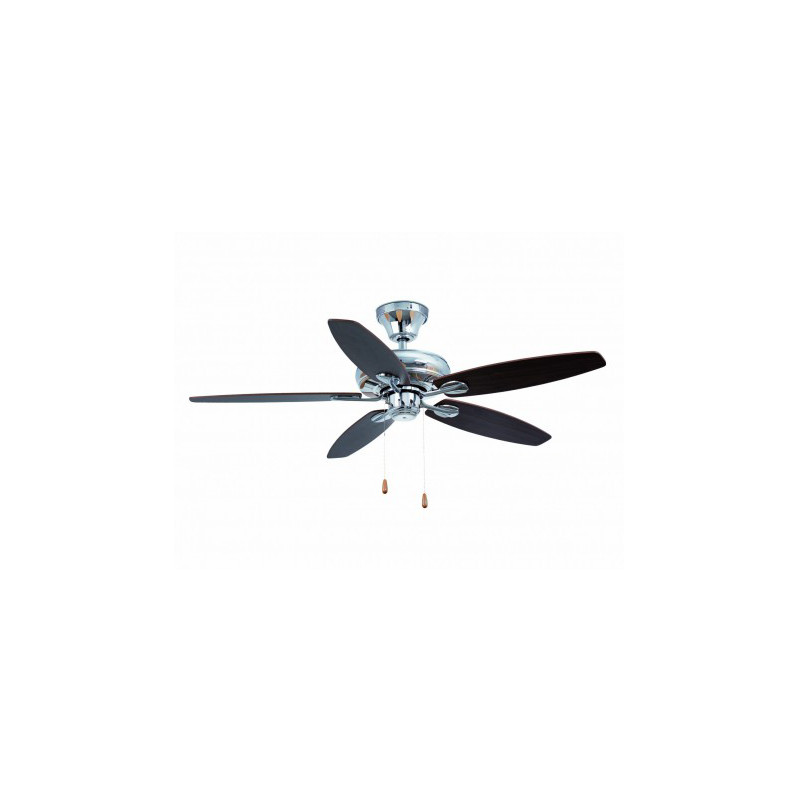 Faro Tomil. Ceiling fan without light suitable for rooms from 17,6m2. Motor made from aluminium and blades from wood. The color of blades are cedar and dark walnut, reversible. Operated by pull chain, setted up with 3 dimmable speeds 115/154/185 rpm which correspond to the following consumptions of 22/37/60w. This ceiling fan has winter / summer function. Easy to install.