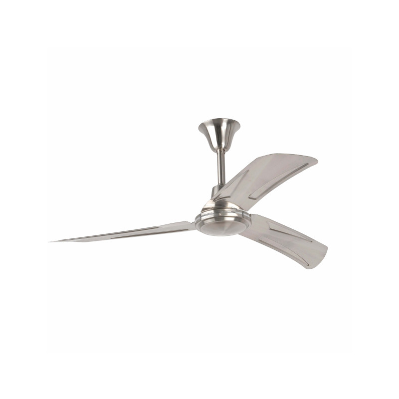 Hunter ceiling fan suitable for rooms from 13m2 to 17,6m2. Motor made from steel and blades from steel. The color of blades are nickel, not reversible . Operated by wall control,( included) setted up with 1 dimmable speeds MAX. 275 rpm which correspond to the following consumptions of 85w.