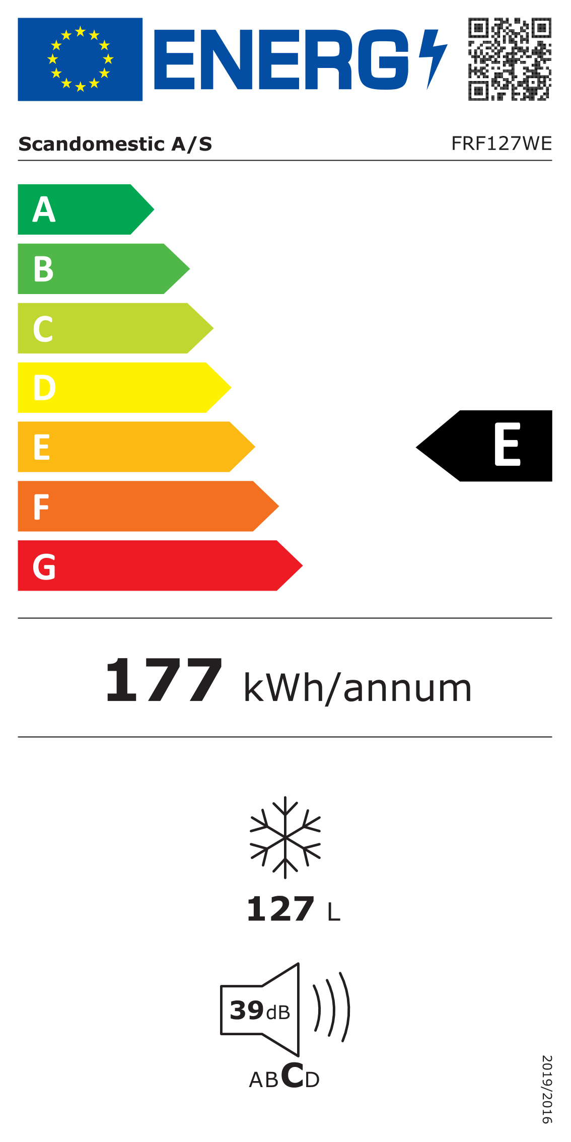 Šaldiklis. Dirba prie -15C, No Frost sistema, Energijos klasė F. Energijos sąnaudos per metus 278 kW. Triukšmo lygis 43 dB. Užšaldymo galia 9,3 kg/24h. Talpa 206 l. Matmenys AxPxG 170x54x59 cm. Svoris - 52 kg. EAN kodas 5704704015074