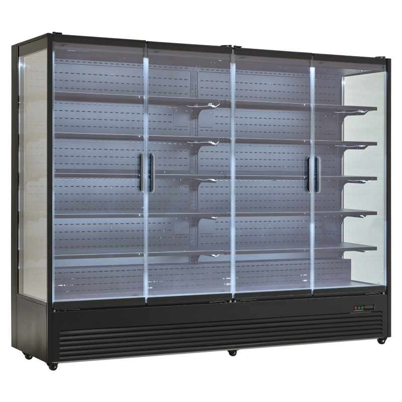 Ar pilnībā stikla durvīm un stikla aizmugurējām sienām šis ledusskapis ir lieliski piemērots spontānu pirkumu veicināšanai un produktu vislabākajai izrādīšanai. 5 plauktus var regulēt dažādos līmeņos, lai pudeles, bundžas un citi produkti ledusskapī būtu stabili un glīti izvietoti.