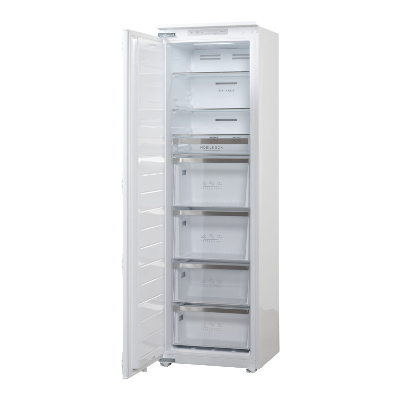 Liela integrēta saldētava ar labu veiktspēju un zemu enerģijas patēriņu. Elektroniska vadība, super saldēšanas un NoFrost funkcijas.